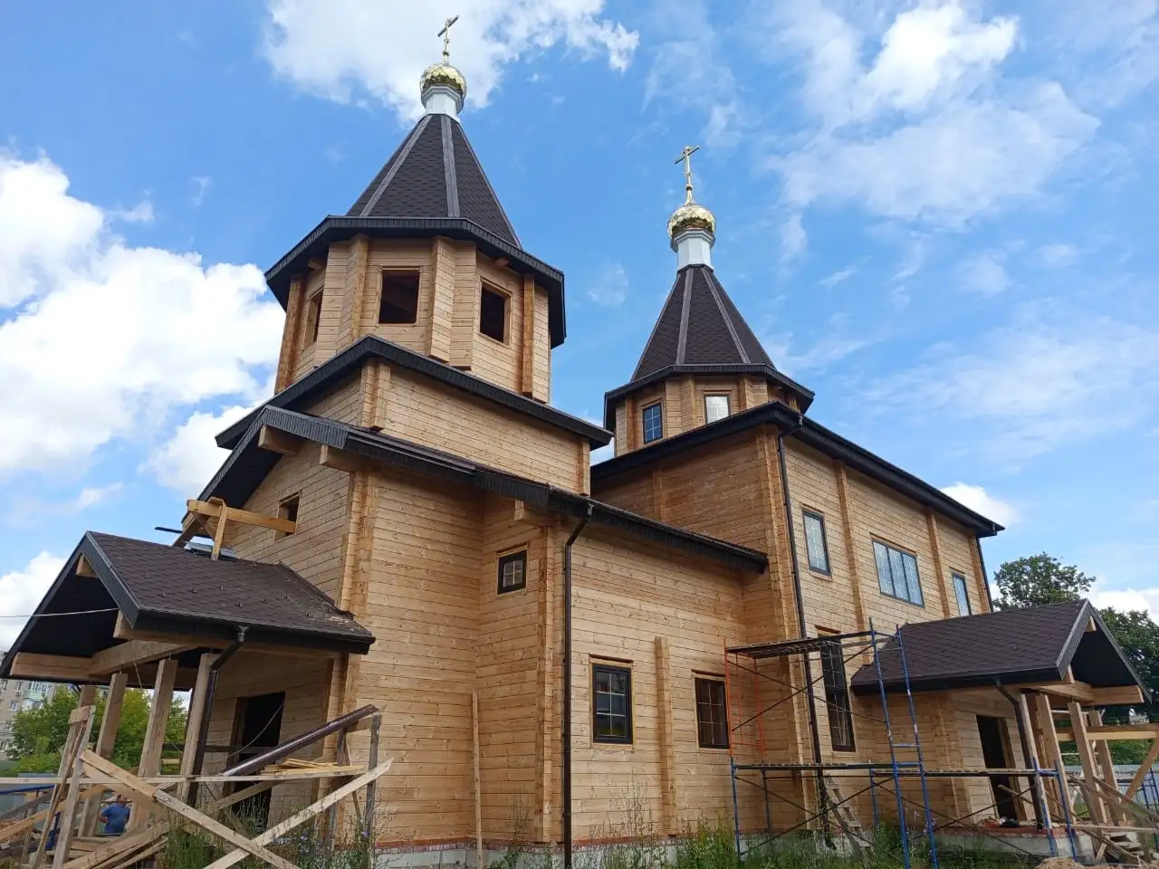 Строительство православного храма из клееного бруса в честь Святителя Николая. Для возведения использовался клееный брус Классик сечением 200х185 мм. При разработке проекта были учтены все необходимые каноны храмовой архитектуры.