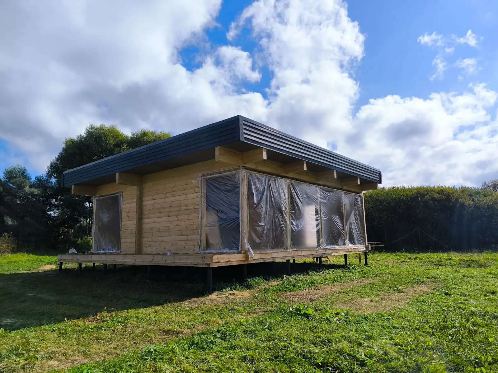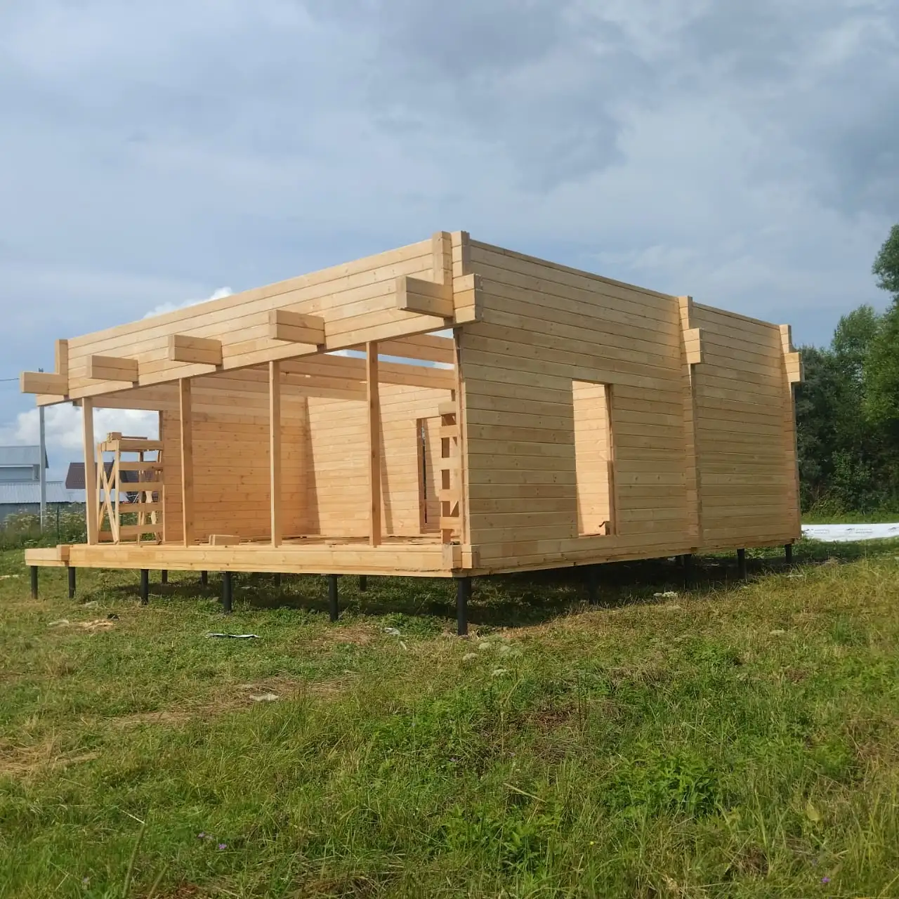 المنزل مصنوع من الجلولام الكلاسيكي مع قسم من 185 * 160 ملم وفقا ل المضيق البحري المشروع. طابق واحد لديه تخطيط مريح: غرفة معيشة مطبخ كبيرة مع نوافذ بانورامية ، 2 غرف نوم ، حمام مجاور.