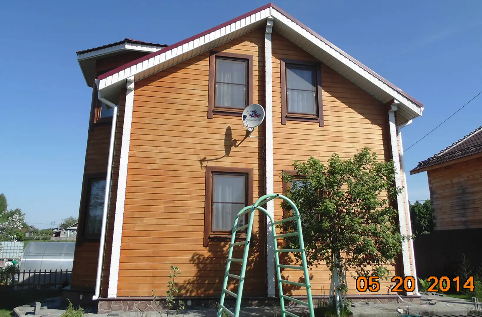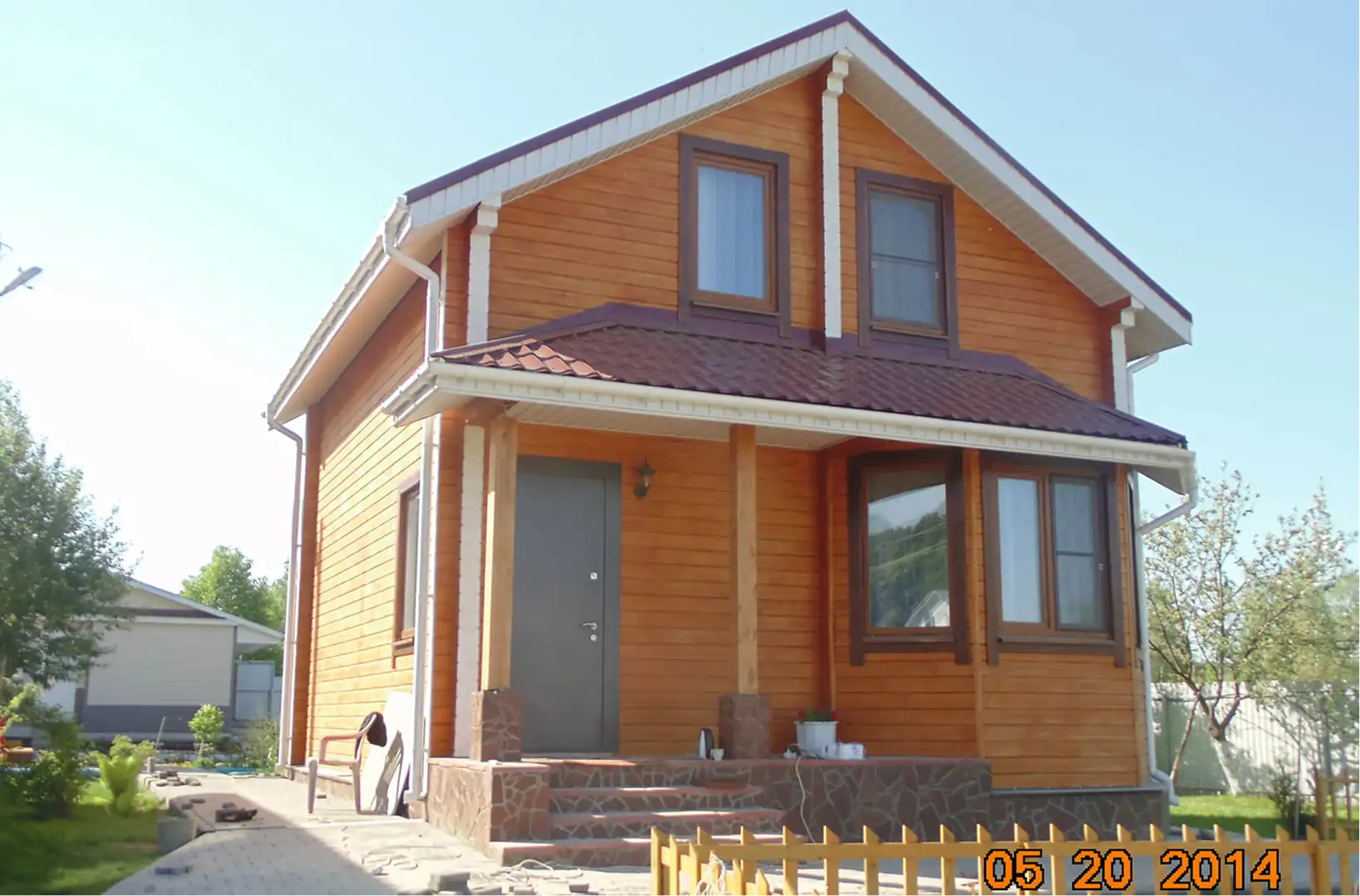 المنزل مصنوع من الجلولام ، وهو مثالي لعائلة كبيرة بسبب الموقع الصغير للغرف. تم تنفيذ المشروع مع مراعاة موقع الكوخ على قطعة أرض صغيرة.