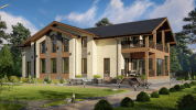 Современный дом из кирпича и клееного бруса в европейском стиле со вторым светом, террасой и уютным балконом. Большая площадь позволит разместить всё самое необходимое, в том числе максимально эффективно использовать свободное пространство. 5 спален, 6 санузлов, светлая гостиная с камином.